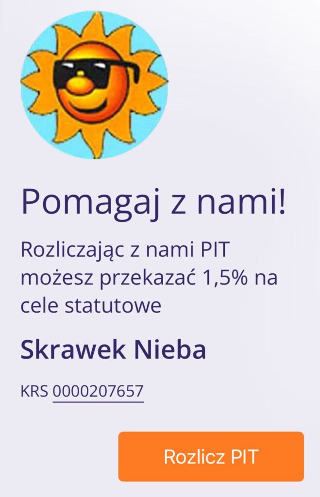 Sfera biedy znów zaczyna się rozszerzać i dotykać w coraz większym stopniu najmłodszych Polaków. Dzięki możliwości przekazania 1,5% podatku na organizacje pożytku publicznego, każdy z nas może przyczynić się do poprawy sytuacji tych dzieci. Organizacje Pożytku Publicznego takie jak nasze Stowarzyszenie Pomocy Dzieciom „Skrawek Nieba, realizują własnie ten cel.
