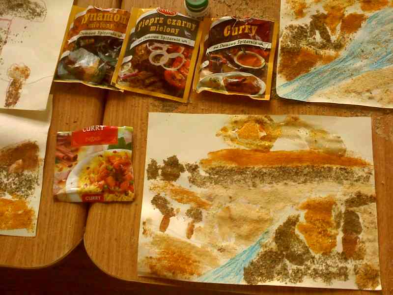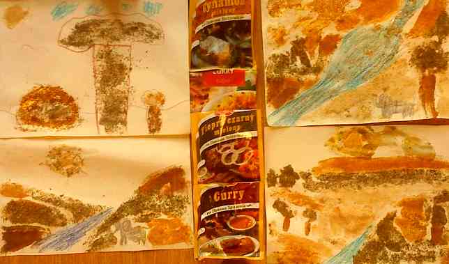 Dzisiaj znany i ciekawy cykl zajęć plastycznych pt. "W kręgu kultury", przeniósł nas w świat Indii, które można było wręcz poczuć! Cykl zajęć poprzedzony był informacjami o egzotyce tej części świata. Dzieci tworzyły barwne opowieści za pomocą przypraw, mogły także poćwiczyć joge małych palców a nawet wykonać asane "diamentowy sen". Zajęcia angażujące wiele zmysłów bardzo się podobały. Zapach curry będzie nam od dzisiaj przypominał dalekie i egzotyczne Indie.