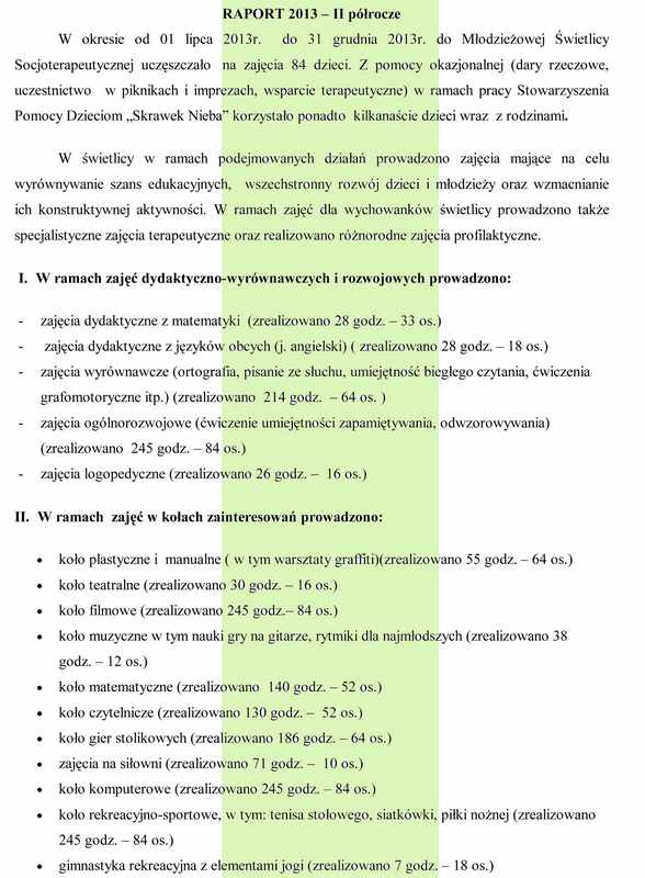 Raport za II półrocze 2013r.